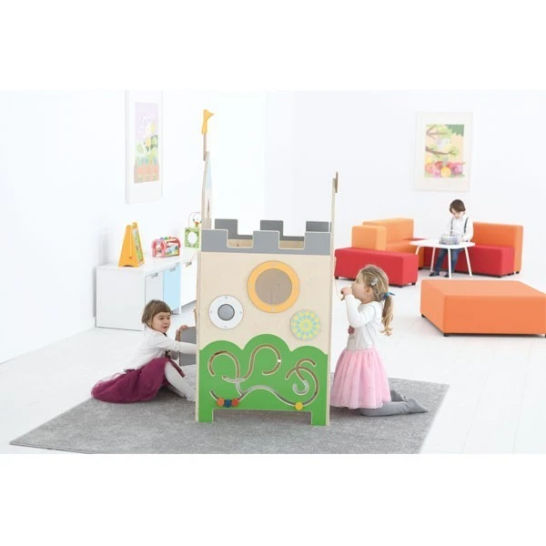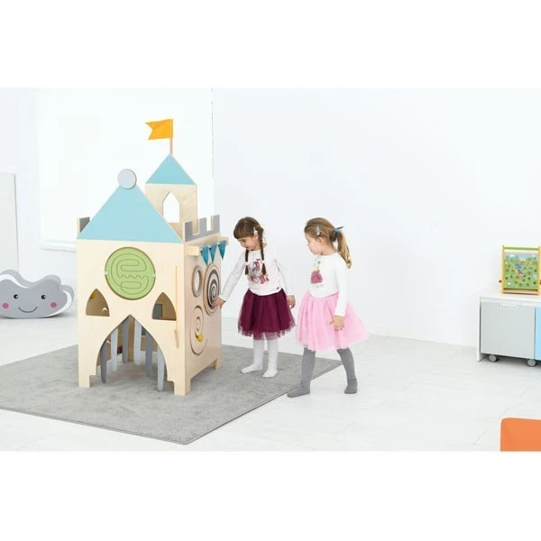Le totem château offre aux enfants une variété de jeux conçus pour développer leur motricité fine et stimuler leurs sens.