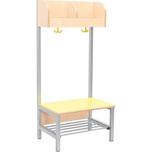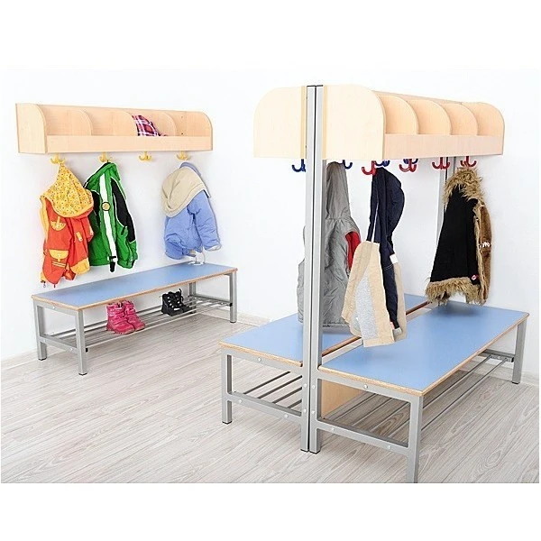 Le vestiaire pour accueillir les enfants dans une collectivité est disponible avec 2 hauteurs pour le banc et 3 finitions couleurs :